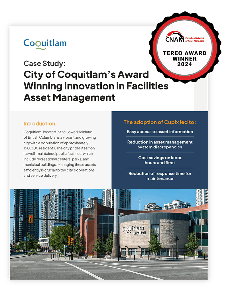 Unlock the story of how the City of Coquitlam, one of the 21 municipalities comprising Metro Vancouver, overcame facility asset management challenges with Cupix and was awarded the Canadian Network of Asset Managers Innovation Award. Before implementing our 3D reality capture solution, their teams faced issues such as fragmented data, delays in decision making due to multiple site visits, and difficulties in coordinating between departments and external partners.