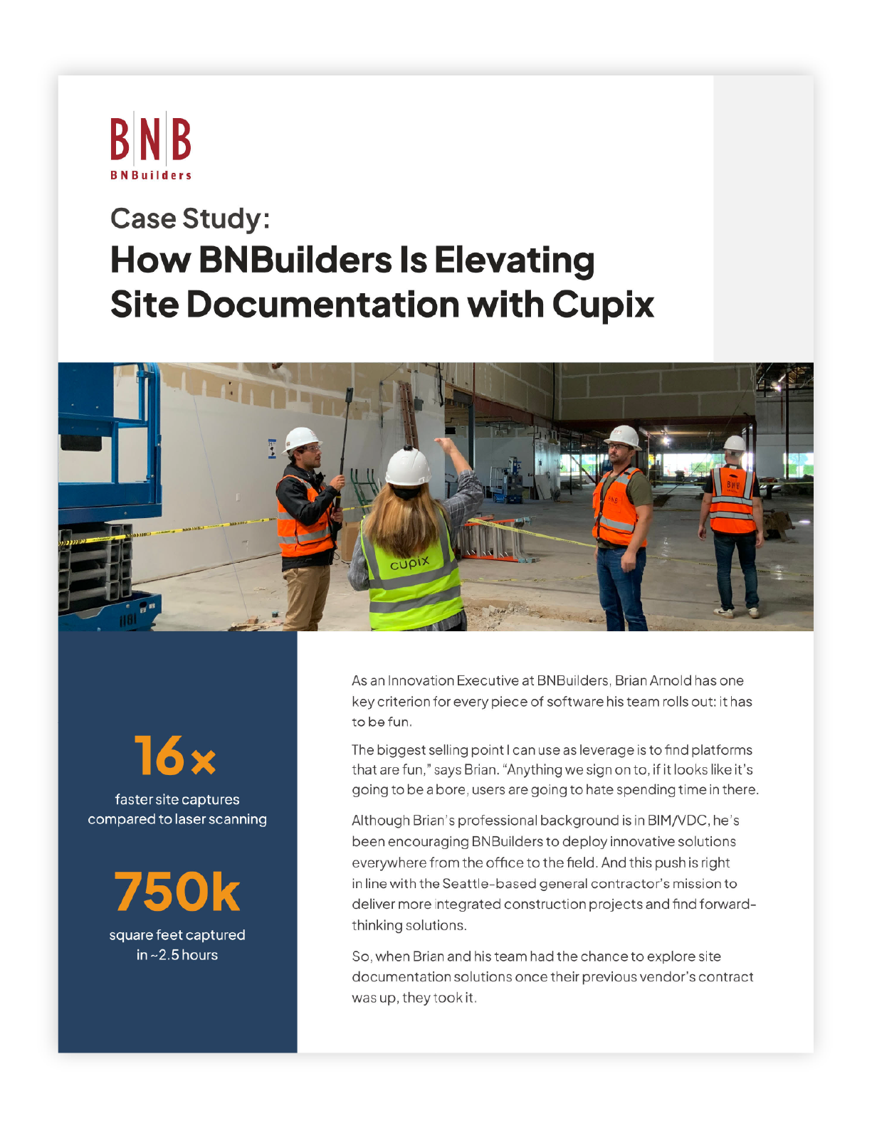 By rolling out Cupix’s spatial intelligence platform, BNBuilders is strengthening collaboration, building stronger relationships with owners, and ensuring quality on both public and private projects. With easy-to-use software for the field and advanced features like BIM compare and timeline compare for VDC teams, Cupix technology enables BNBuilders to champion innovation and deliver the built world.